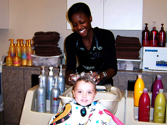 I went to the Galleria to get my first professional hair cut. |